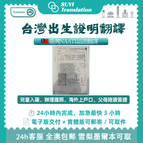 點擊查看速譯營業執照 | 點擊查看速譯翻譯師NAATI認證證書 | 澳洲線下取件 | 全澳境內郵寄。